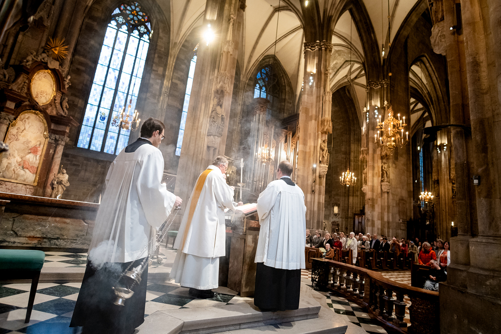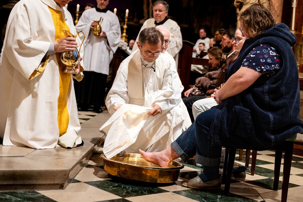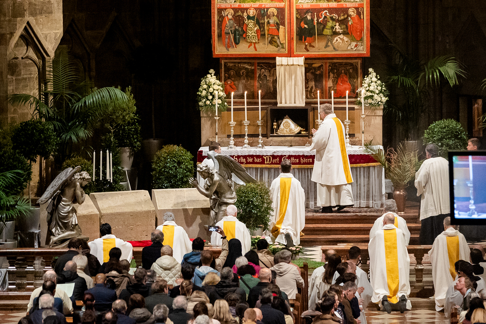 Die Feier am Gründonnerstag endet mit der Übertragung des Allerheiligsten, also den konsekrierten Hostien, an einen anderen Aufbewahrungsort, der Altar wird abgedeckt und die Gläubigen werden zur nächtlichen Anbetung eingeladen. Eröffnet sind damit die "Drei österlichen Tage vom Leiden, Sterben und Auferstehen des Herrn", Karfreitag, Karsamstag und Ostersonntag.