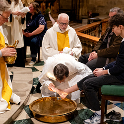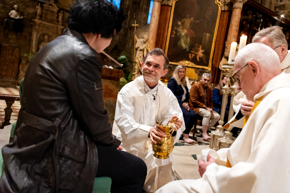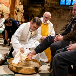 Die Geschichte vom Gründonnerstag sei eine hochaktuelle, erklärt Pater Jörg Thiemann CMM: "Am Gründonnerstag dürfen wir uns daran erinnern, dass Jesus auch uns die Füße wäscht. Das Waschen der Füße ist ein Symbol für den Dienst Jesu an uns. Jesus vergibt auch uns die Sünden. Wenn Jesus seinen Jüngern die Füße wäscht, auch dem Judas, dann zeigt er: Niemanden schließt er von seiner Liebe aus. Wir sind aufgefordert, genau so zu handeln. Jesus sagte: 'Wenn nun schon ich euer Meister und Herr euch die Füße wasche, dann müsst auch ihr einander die Füße waschen", erklärt Pater Thiemann die Symbolik der Fußwaschung am Gründonnerstag. Die Fußwaschung wird heute in allen Bischofskirchen durchgeführt, wo der Bischof zwölf ausgewählten Personen die Füße wäscht.