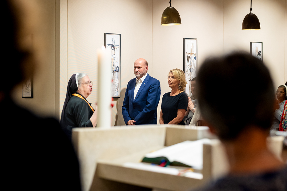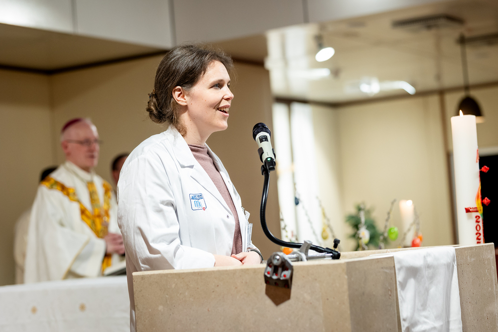 In der Kapelle des AKH Wien wurde am 29. April 2025 ein neues Altarbild der iranischen Künstlerin Samira Ghaemi von Weihbischof Franz Scharl gesegnet; es soll Hoffnung spenden, wo Menschen mit Leben und Tod konfrontiert sind. Das Bild ersetzt ein 2015 zerstörtes Werk und zeigt Jesus in leuchtenden Farben, umgeben von Menschen in warmen Tönen vor einem blauen Himmel. Wir waren mit der Kamera dabei.