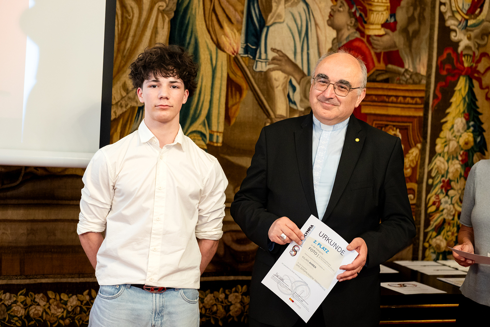 Unter dem Titel "Unheilige Allianz oder heilige Pflicht" haben Schülerinnen und Schüler im katholischen Religionsunterricht im Jänner dieses Jahres insgesamt 343 Essays und Fotoarbeiten zum Thema Religion und Politik eingereicht. Nach Beurteilungen in den jeweiligen Diözesen und der Bundesjury wurden im Mai die Siegerinnen und Sieger der fünften Religions-Olympiade "Theolympia" verkündet und am Montagabend im Festsaal des Erzbischöflichen Palais in Wien geehrt. Wir waren mit der Kamera dabei.